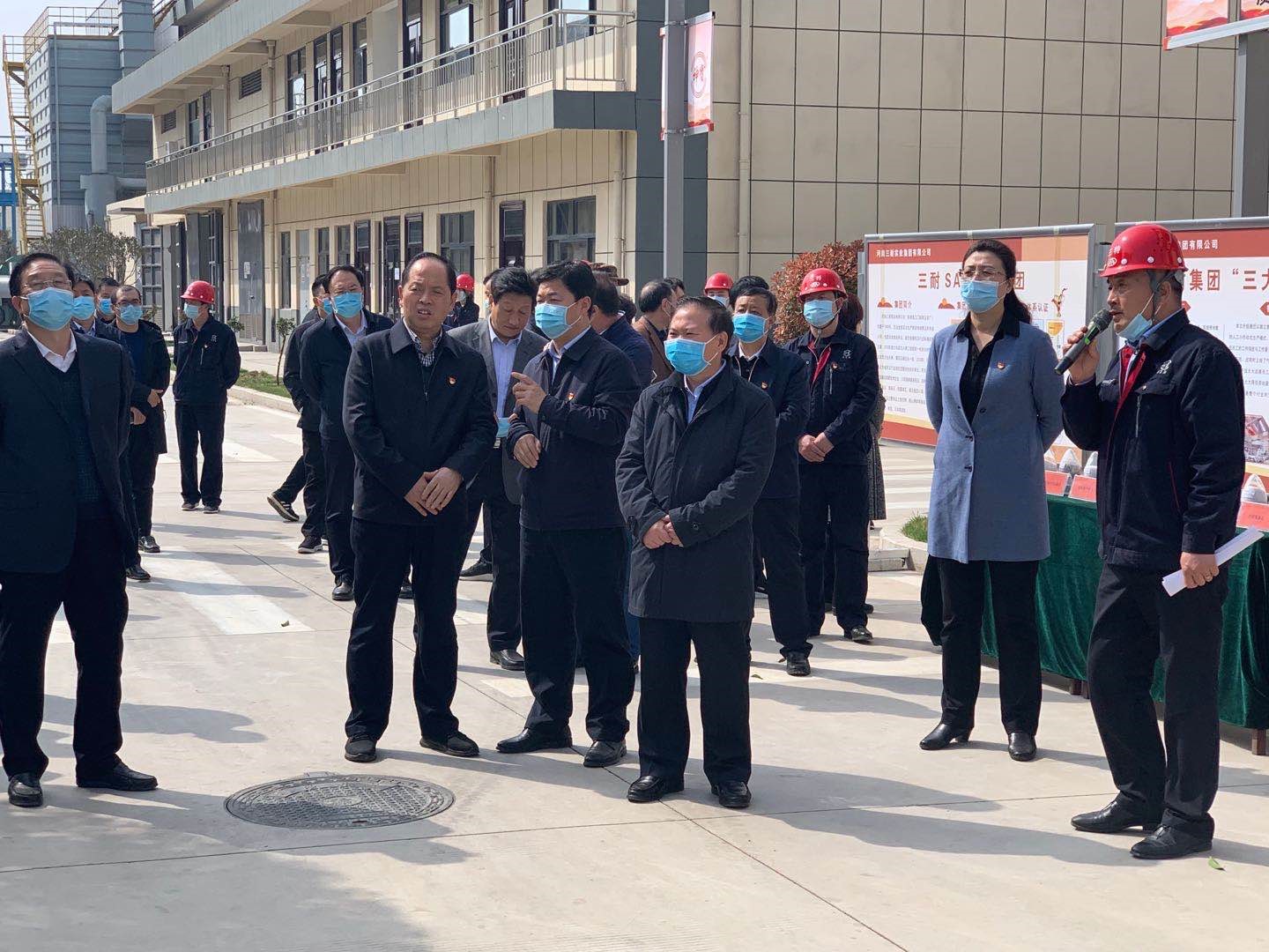 2020年3月31日三門峽市復(fù)工復(fù)產(chǎn)暨重點(diǎn)建設(shè)項(xiàng)目觀摩團(tuán)蒞臨河南三耐集團(tuán)檢查指導(dǎo)工作。
